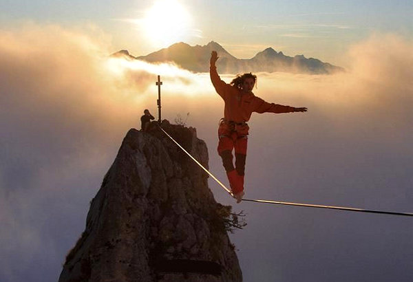 the middle. You are a tightrope walking acrobat and are about to